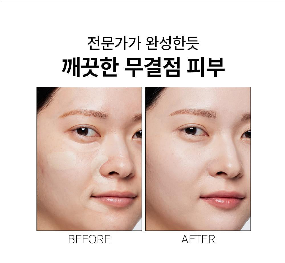 韓妹都話:「遮瑕力夠但唔厚重,眼底唔乾唔起紋」 質地柔滑,用手指都推得開,唔使刷具都 blend 得自然。 遮完唔浮粉,妝感貼膚,唔會有一舊舊嘅感覺,仲有少少打亮效果,望落精神咗。